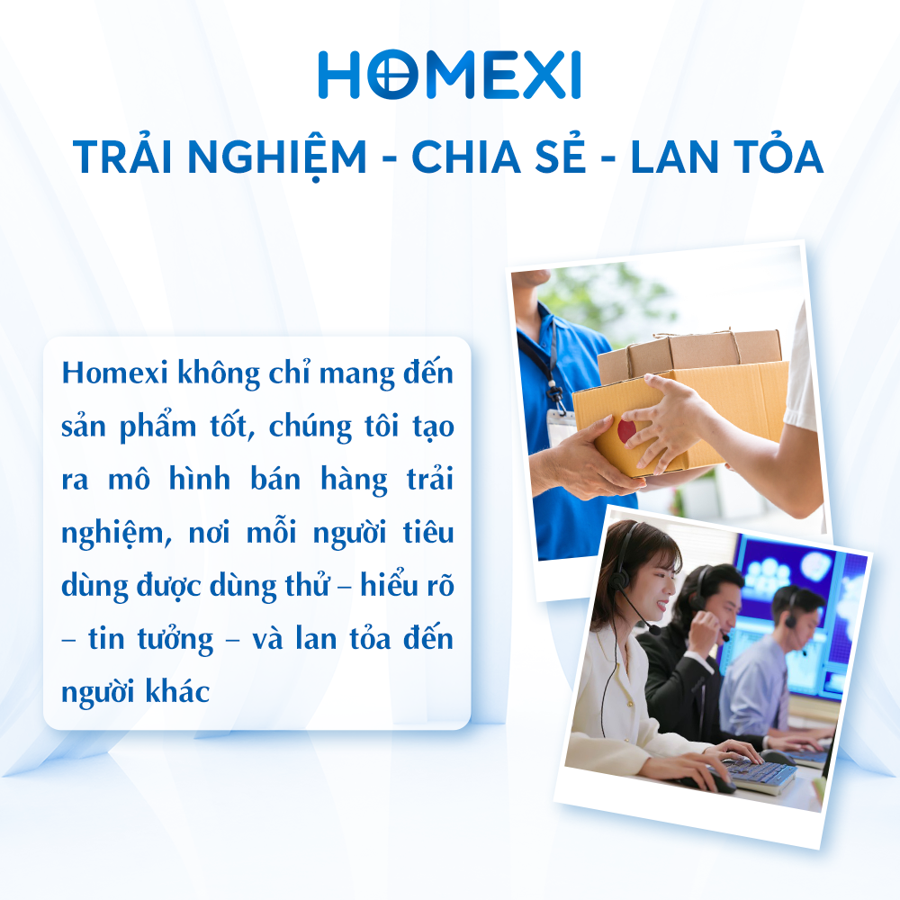 Homexi không chỉ mang đến sản phẩm tốt, chúng tôi tạo ra mô hình bán hàng trải nghiệm, nơi mỗi người tiêu dùng được dùng thử – hiểu rõ – tin tưởng – và lan tỏa đến người khác.