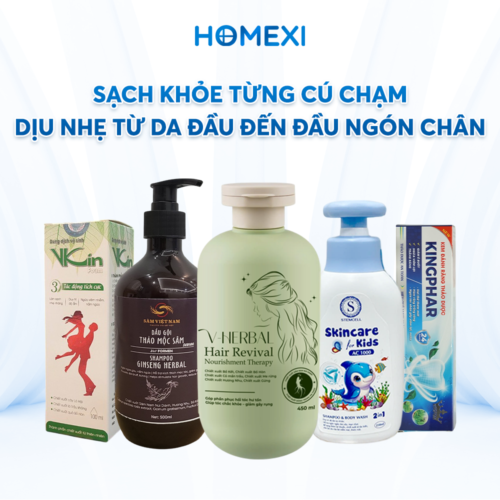 COMBO CHĂM SÓC CÁ NHÂN HOMEXI 12 – SẠCH KHỎE TỪNG CÚ CHẠM – DỊU NHẸ TỪ DA ĐẦU ĐẾN ĐẦU NGÓN CHÂN