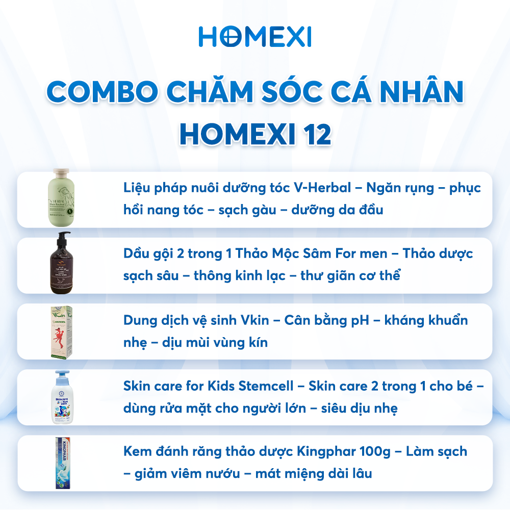 Combo chăm sóc cá nhân Homexi 12 gồm: